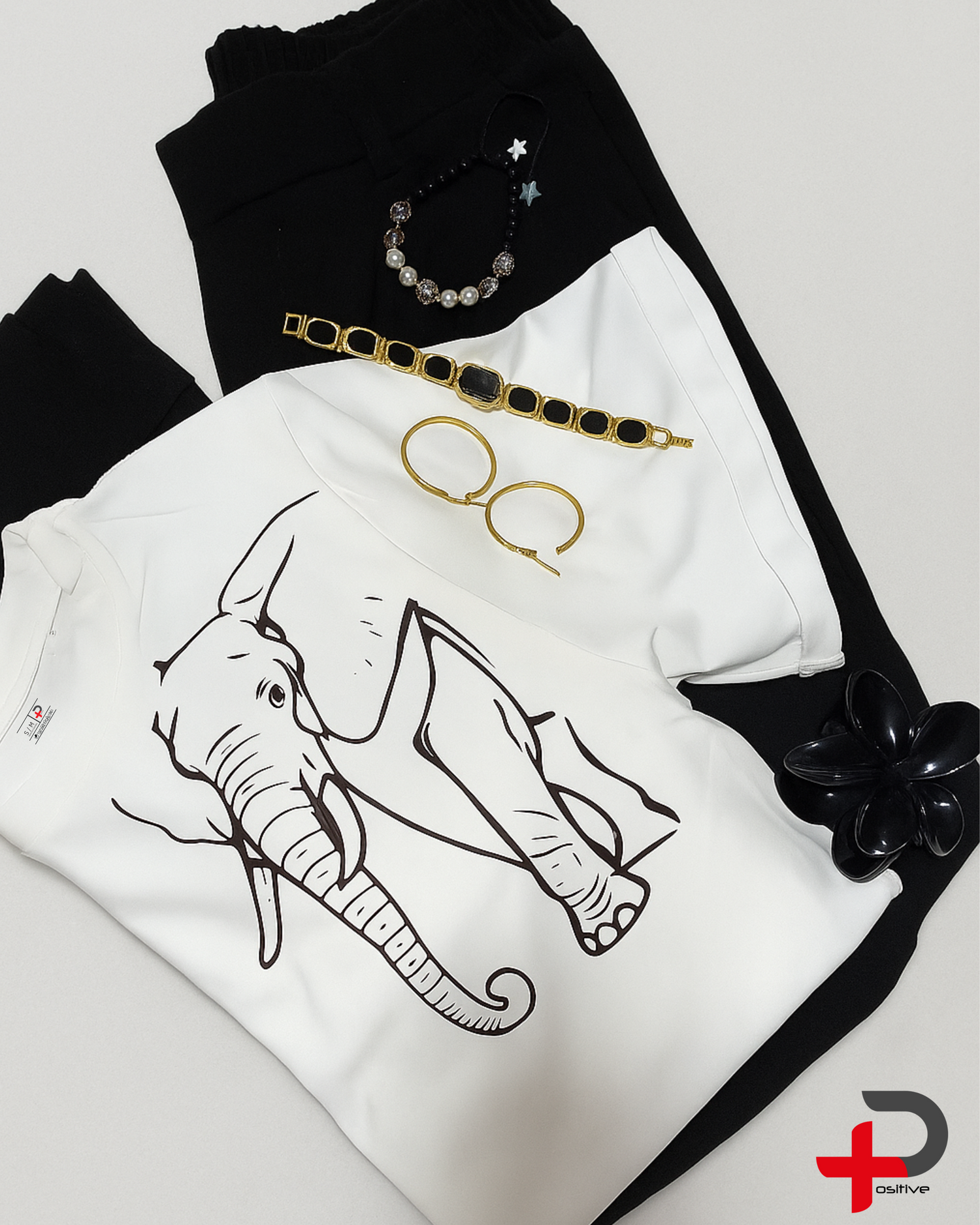 Camiseta manga corta básica estampada para mujer, positivo (Elefante)