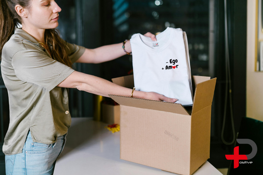 T-shirt básica blanca estampada para mujer, mensaje, frase, positivo (-Ego + Amor)
