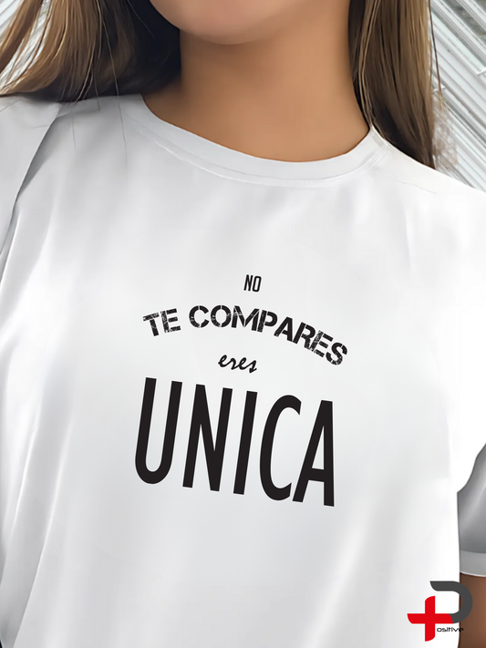 Camiseta básica estampada para mujer, mensaje, frase, positivo, motivacional. (No te compares)